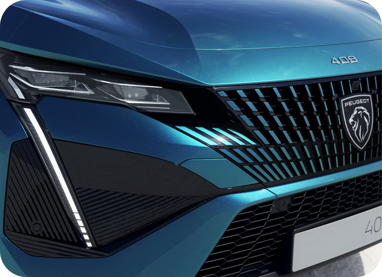 El nuevo 408, posee un frente que cautiva y atrae a quien lo mire. Cuenta con faros Matrix LED, en compañía de los faros colmillo DRL LED. A ellos, se les suma su parrilla en color carrocería que en combinación con el gran motor de 215cv, hacen del frente del nuevo 408 un diseño elegante y deportivo, respaldado por su potencia.